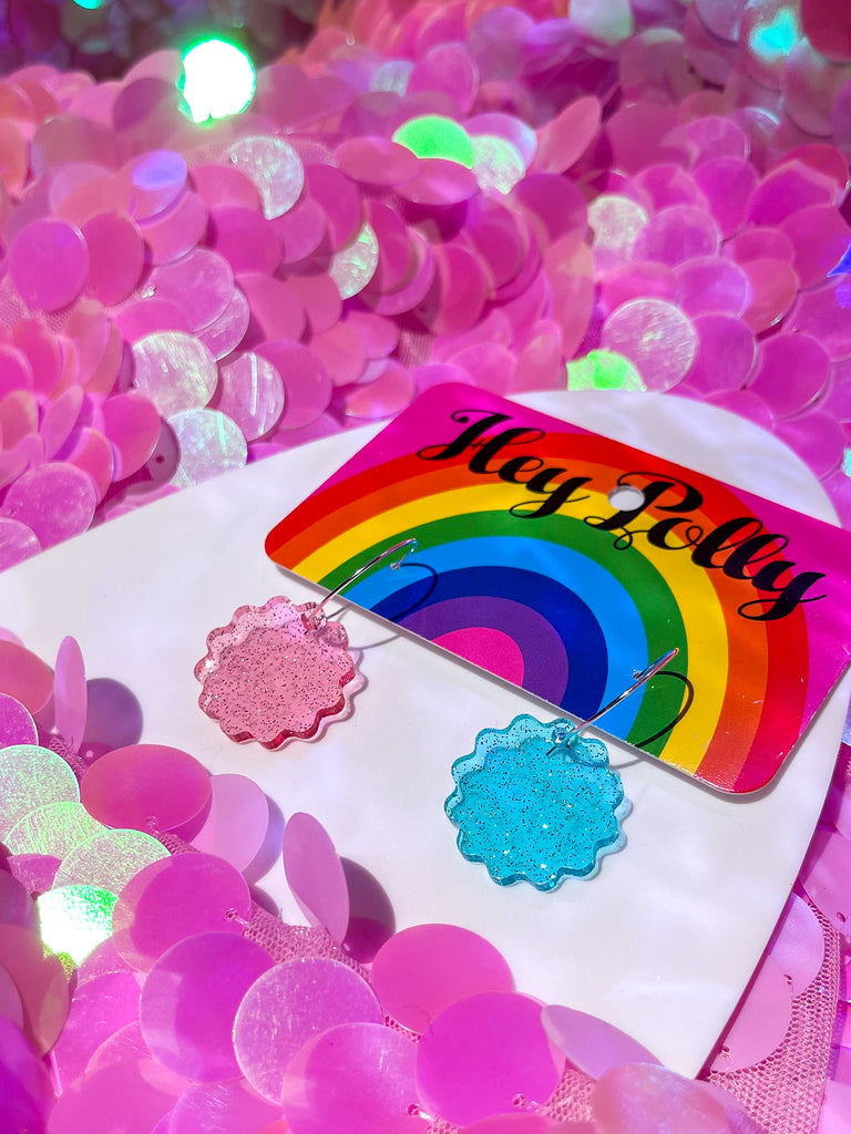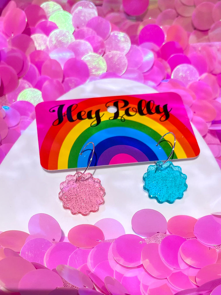 Scalloped Pom Pom (Hoops) Pink & Blue jelly