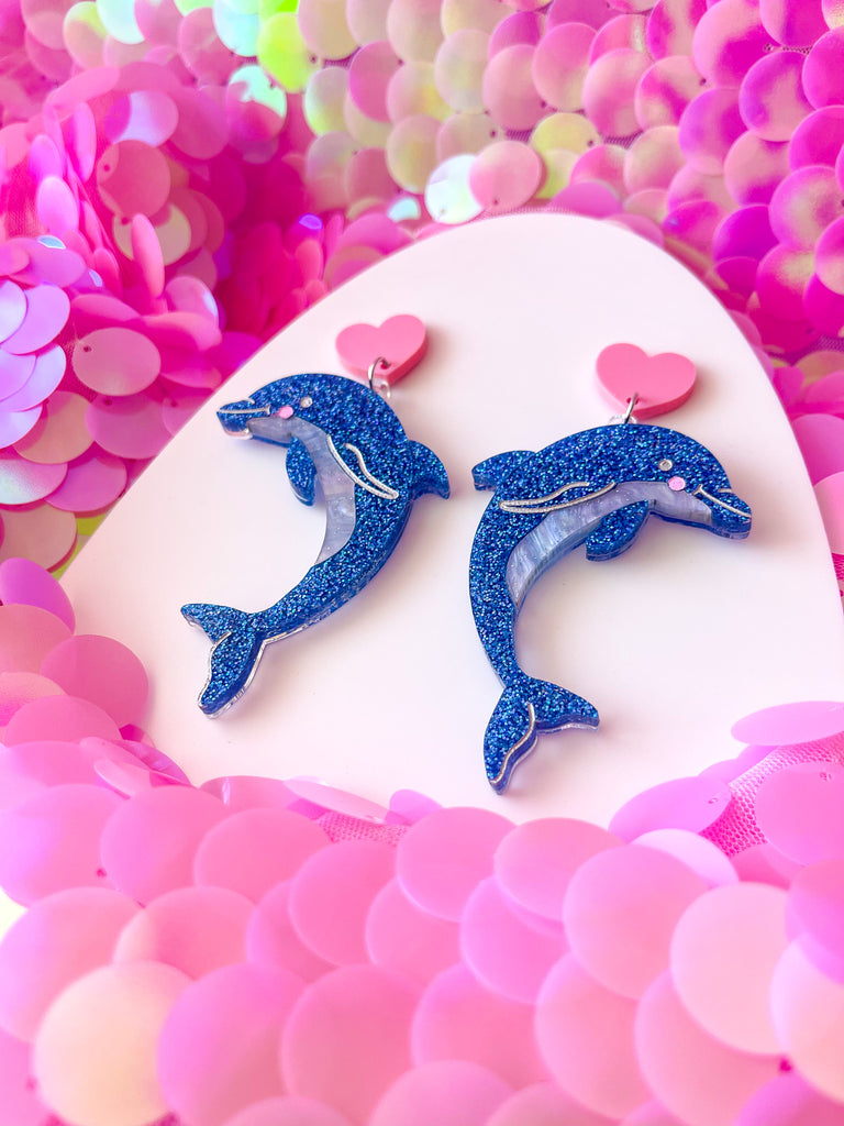 Dazzle Dolphin (Dangles) Blue Glitter/Pink