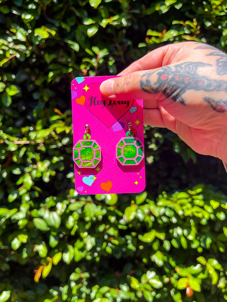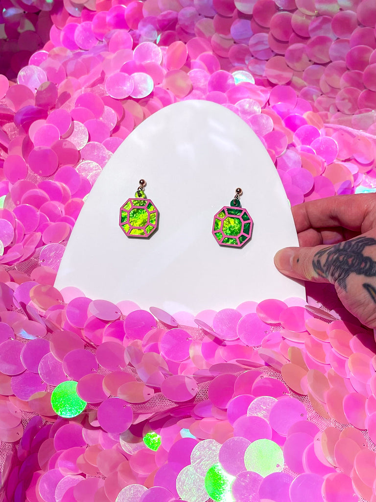 Emerald Aura mini (Dangles) Pink - Green Swirls