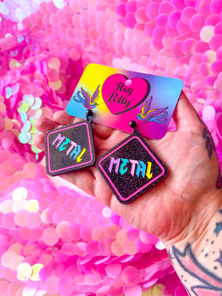 Unleash your inner metalhead with our Metal Warning Sign Earring Dangles – the ultimate accessory for those who like their style as loud as their riffs! Crafted for the headbangers and mosh pit enthusiasts, these dangles are the perfect way to show the world that your style is as hardcore as your music taste.