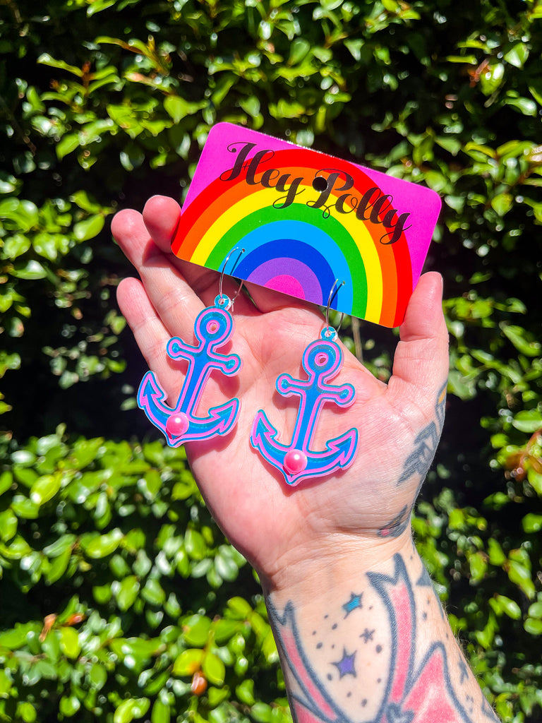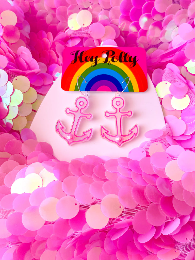 These Anchor earrings are all about iridescent pink sparkle with a cheeky twist. Shimmering like a sunset and topped with a pink faux pearl, they’re the perfect mix of nautical vibes and playful glam. Float through your day with a little sparkle.