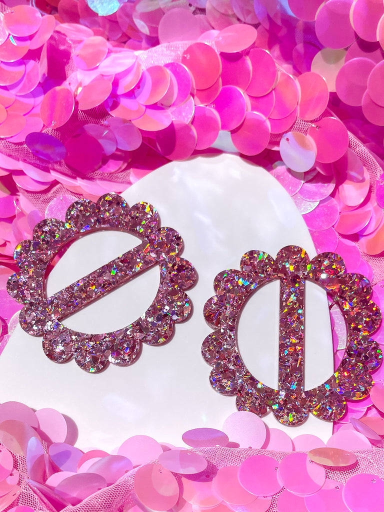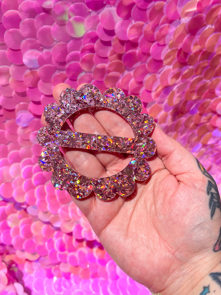Tee Buckle - Flower Size Large (Pink Glitz)