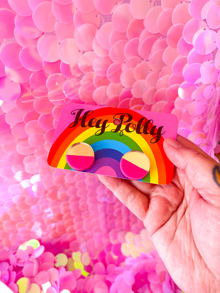 Two-Tone Taylor (Studs) Rose Gold Mirror & Bright Pink